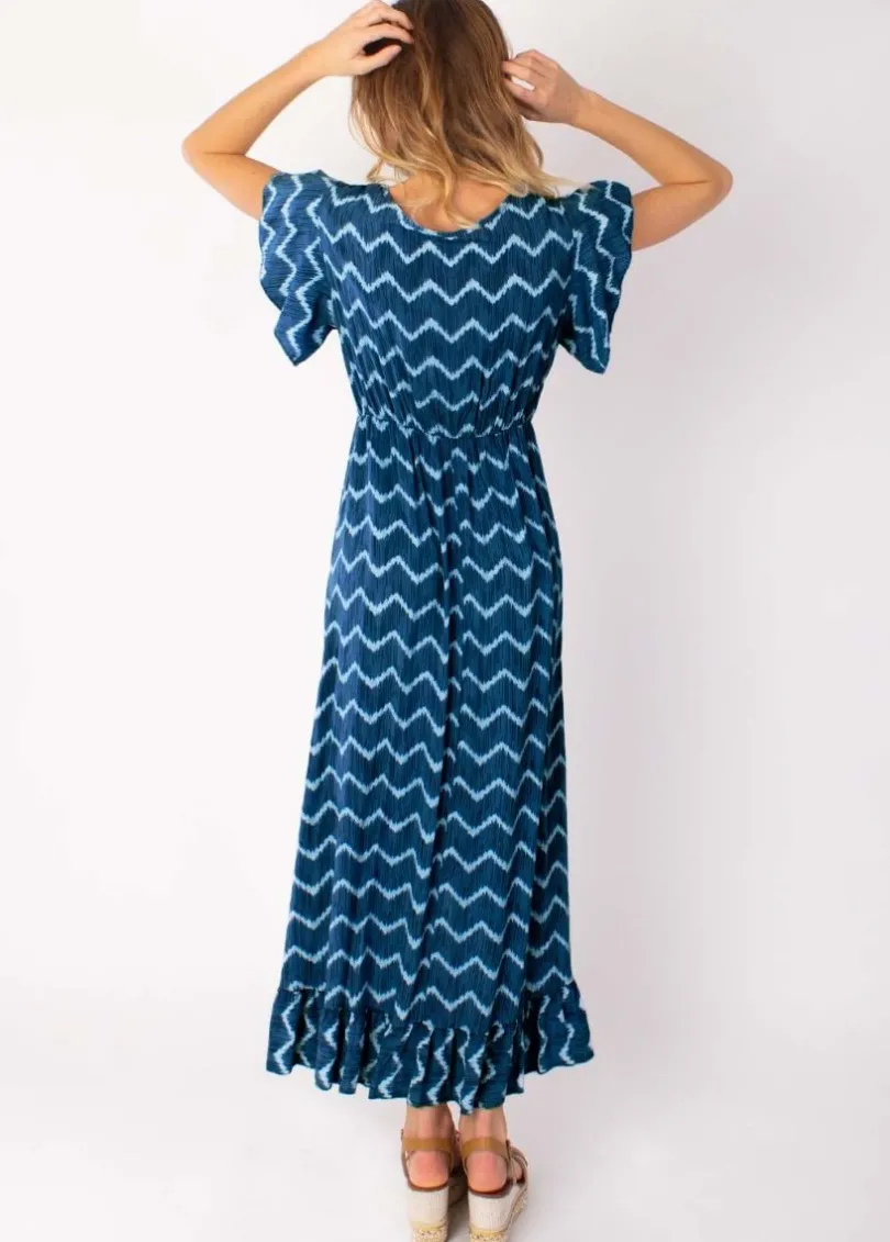 Best Sale Coton Du Monde Robe longue à volants KENDRA imprimé tie and dye marine Tie&Dye Marine