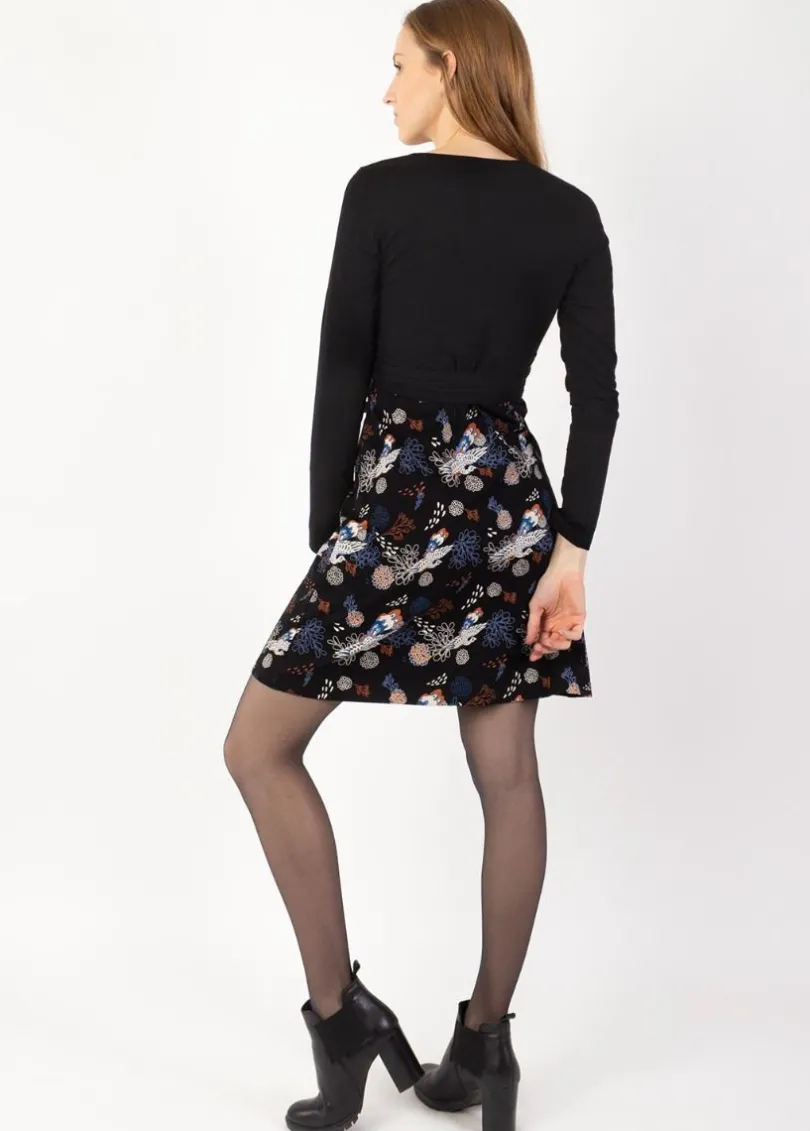 Evadez-vous en portant cette robe hiver très féminine à l’imprimé voluptueux.Cette robe courte aux manches longues …