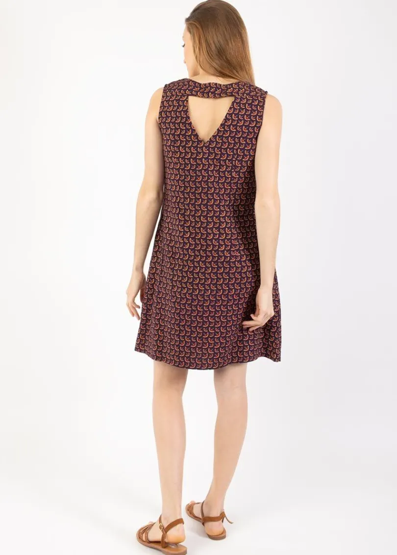 Adoptez cette robe courte en viscose, facile à porter qui combine originalité avec sa touche fantaisie dans le dos et praticité. On aime ses motifs ethniques originaux de couleur prune qui donnent un style tendance à cette jolie robe.