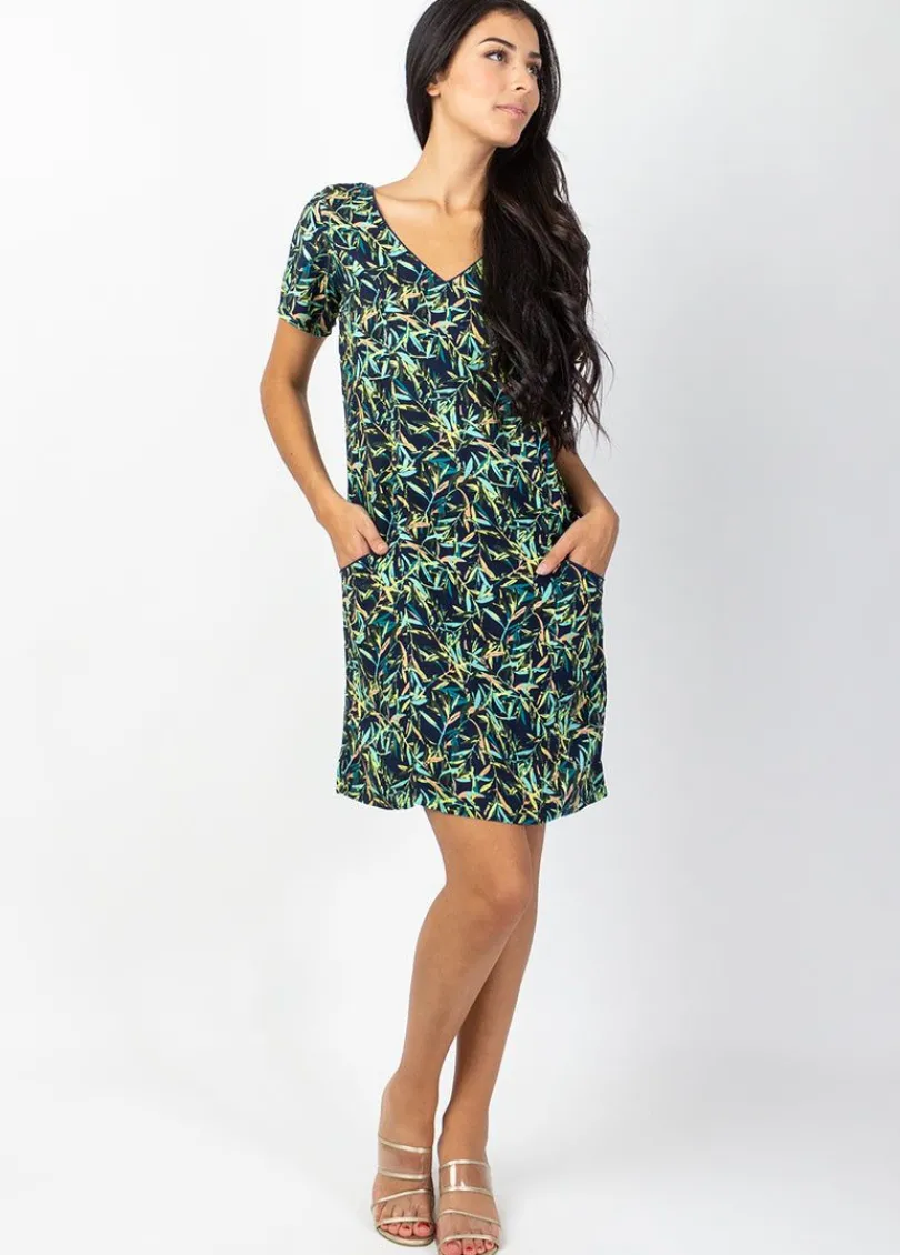 Idéale pour toutes les morphologies, cette robe courte en 100% coton et aux magnifiques motifs frais et tropical soulignera avec simplicité votre silhouette. On aime sa coupe droite, ses manches courtes, ses poches profondes sur le devant de la robe ainsi que la légère ouverture fantaisie en haut du dos. Une pièce féminine très facile à porter.