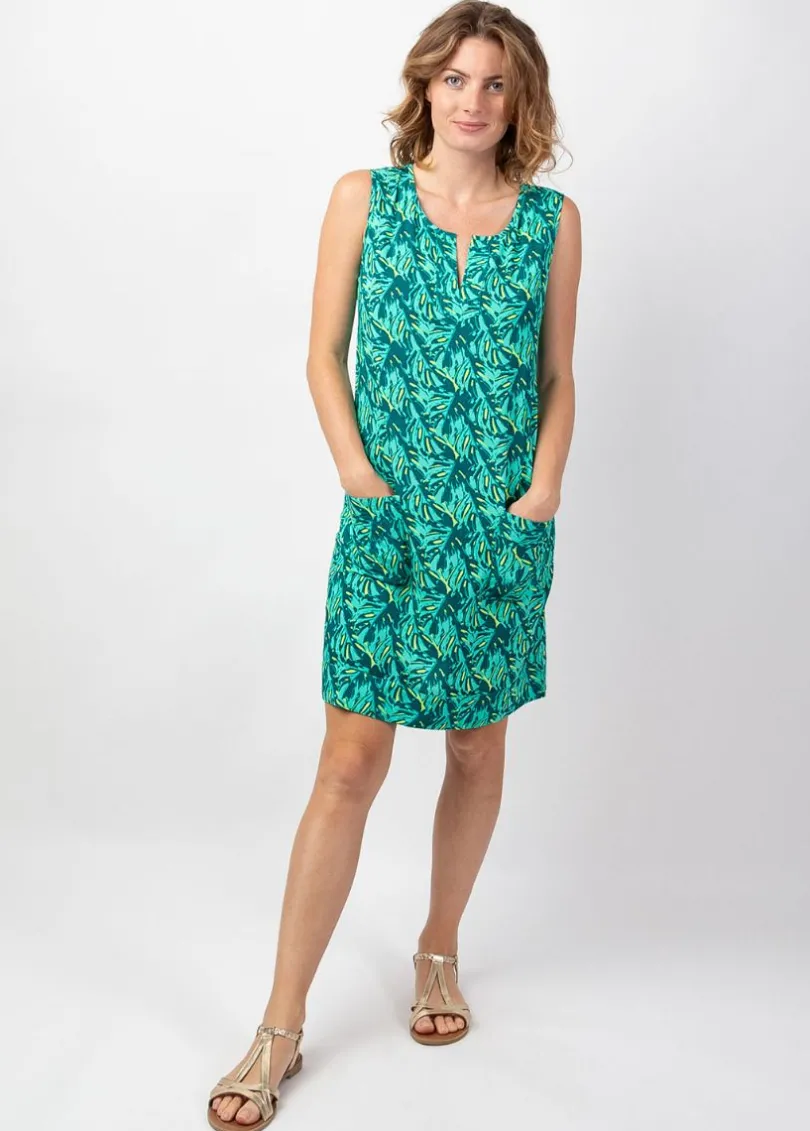 Cheap Coton Du Monde Robe MARLA sans manches imprimé tropical vert Gaia