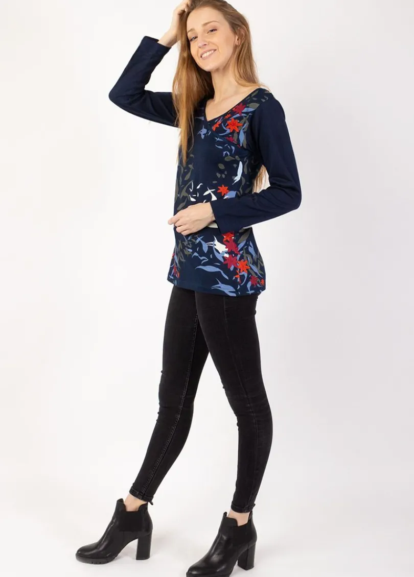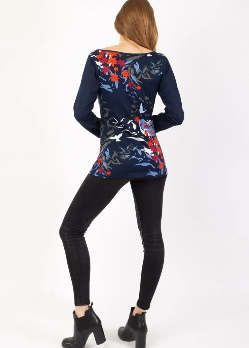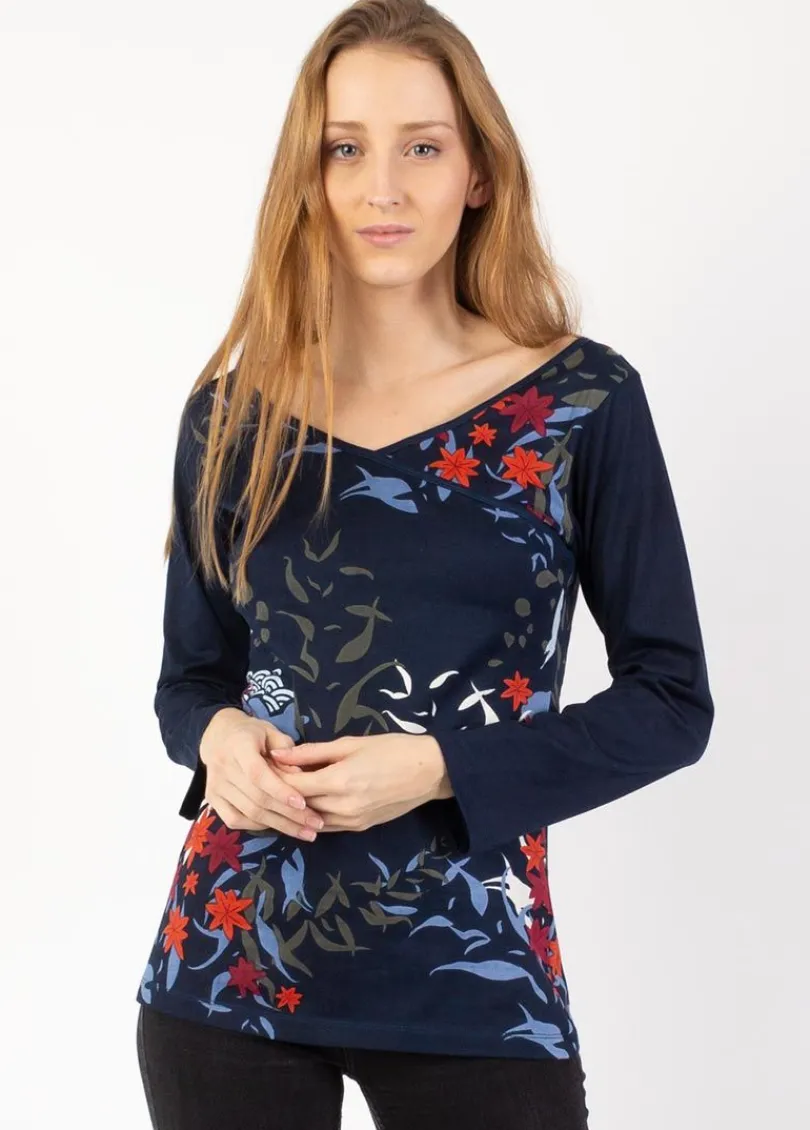 Cheap Coton Du Monde Top manches longues en coton KARAN imprimé végétal Japan Hiver