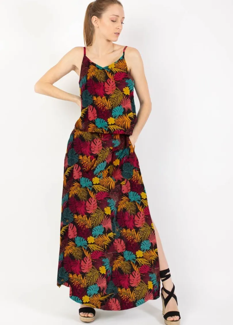 Be the first to review “Clearance Coton Du Monde Robe longue fendue ASSILIA imprimé tropical Palme Orange” Annuler la réponse