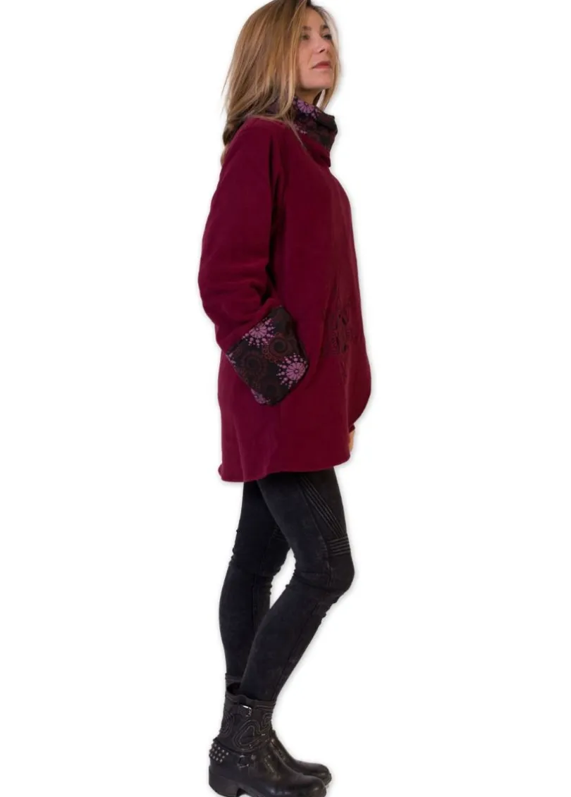 Discount Coton Du Monde Veste polaire brodée HUDSON mandala Bordeaux