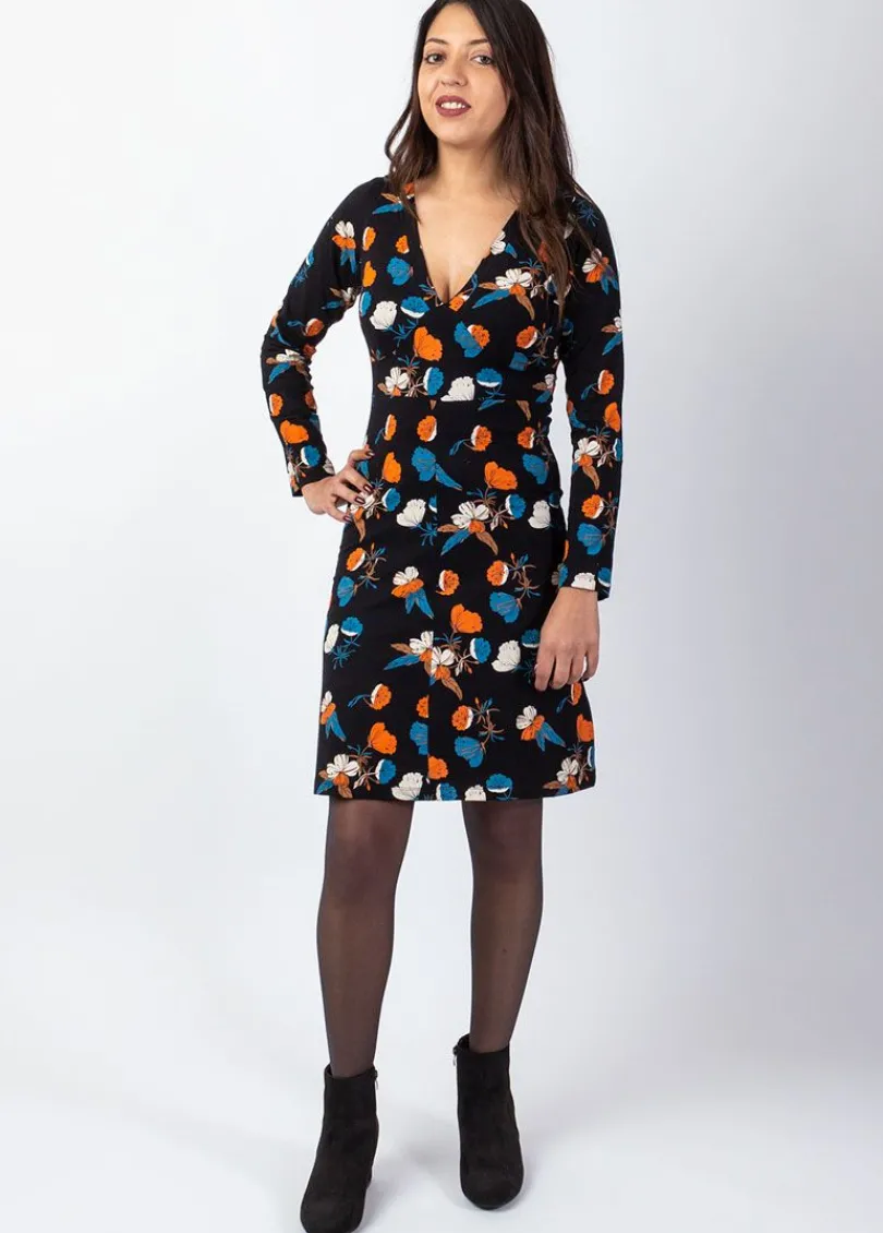 Le motif automnal de cette jolie robe courte à manches longues réchauffera avec goût vos tenues. Très féminine avec sa coupe légèrement cintrée et son encolure en V, cette robe en coton sera parfaite avec des bottes à talons.