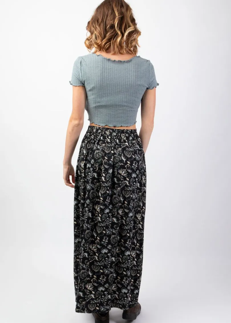 Jupe hiver imprimé à motif cachemire noir. On aime sa coupe droite féminine avec la ceinture élastiquée au dos pour un maximum de confort.