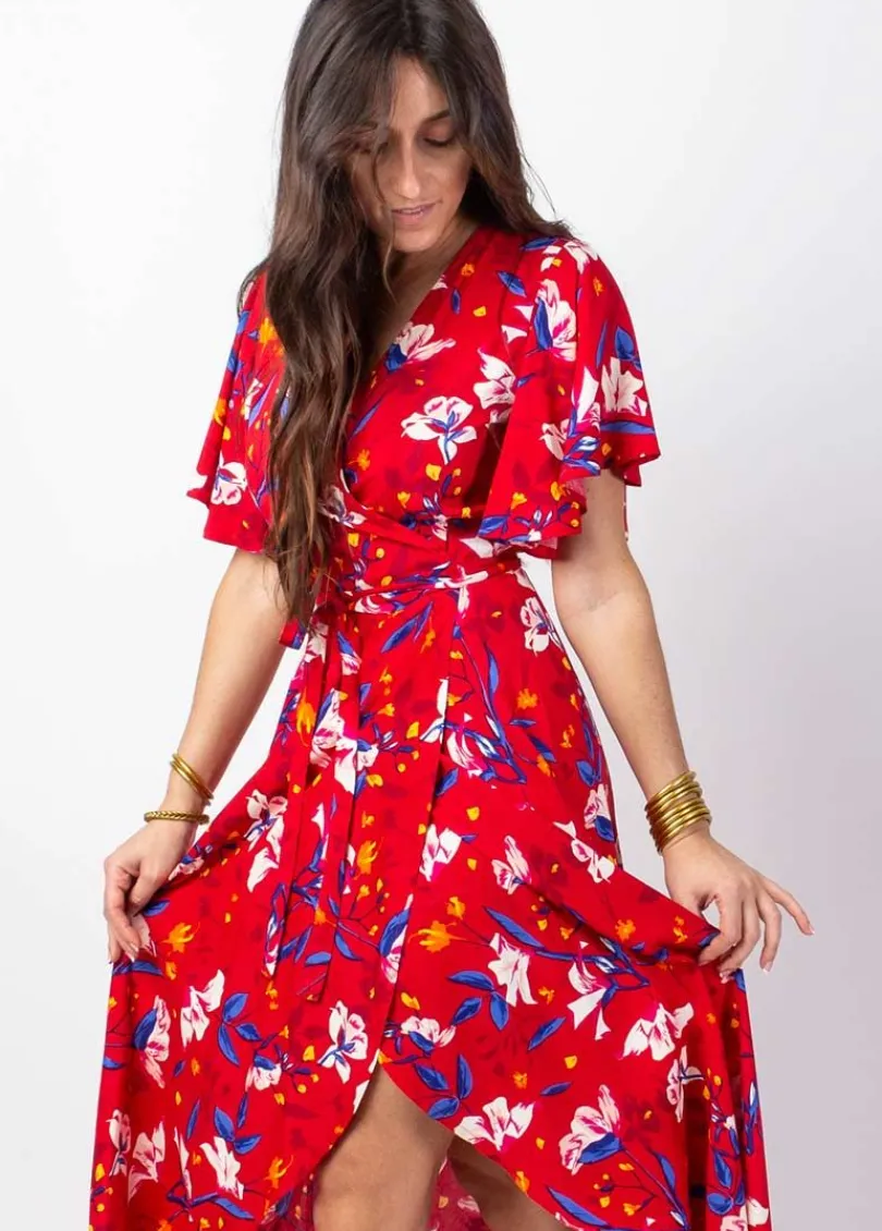 Flash Sale Coton Du Monde Robe longue SAKURA bohème imprimé fleuri rouge Pétale