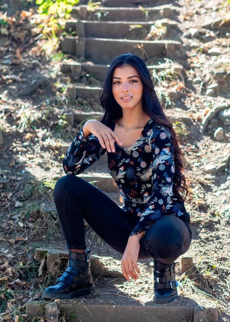 Confortable et pratique, ce top 100% coton s’associera facilement avec un jean, un pantalon noir ou encore notre jupe imprimé narcisse pour un total look imprimé.