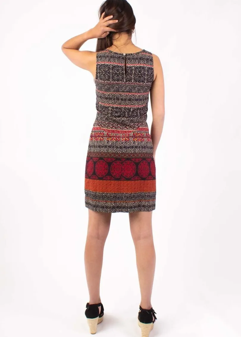 Adoptez cette robe courte sans manches, très élégante et à tendance ethnique.