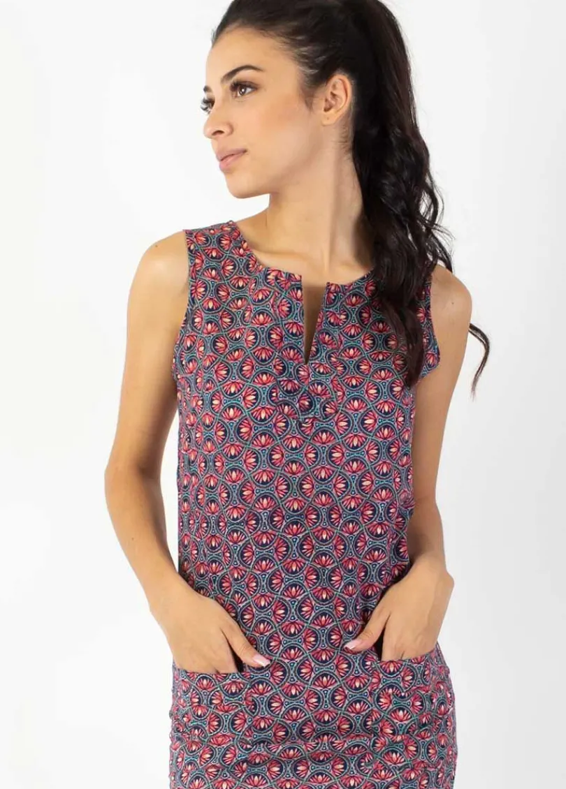 Hot Coton Du Monde Robe courte en coton MARLA sans manches imprimé Lotus