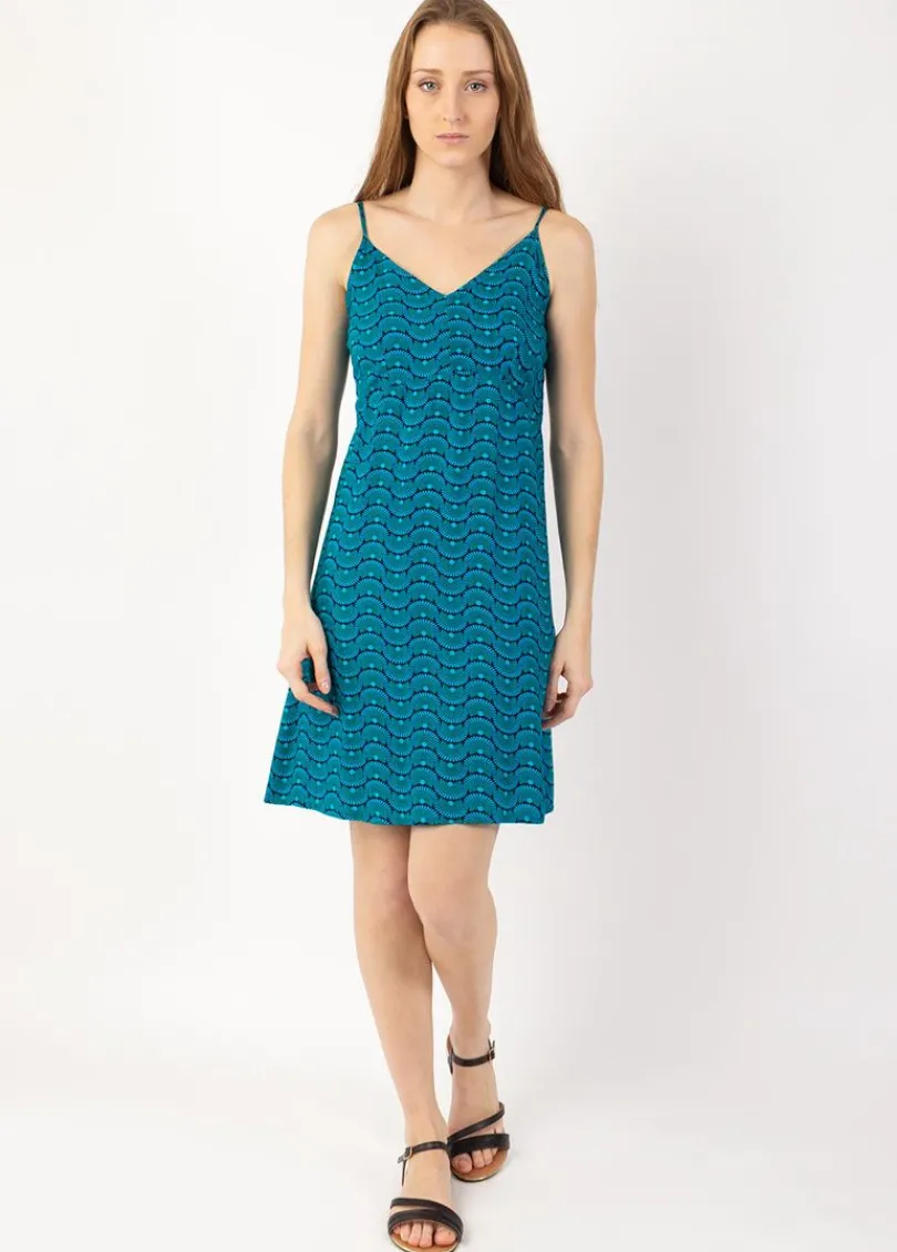 On aime cette robe courte à fines bretelles réglables sublimée par la couleur bleu et le motif ethnique en forme de vagues. Coupe légèrement cintrée, décolleté en V qui dégage gracieusement le cou. La matière fluide et rafraichissante de cette robe viscose est idéale pendant les journées chaudes de l’été. Cette petite robe est pratique et facile à porter en toutes occasions.