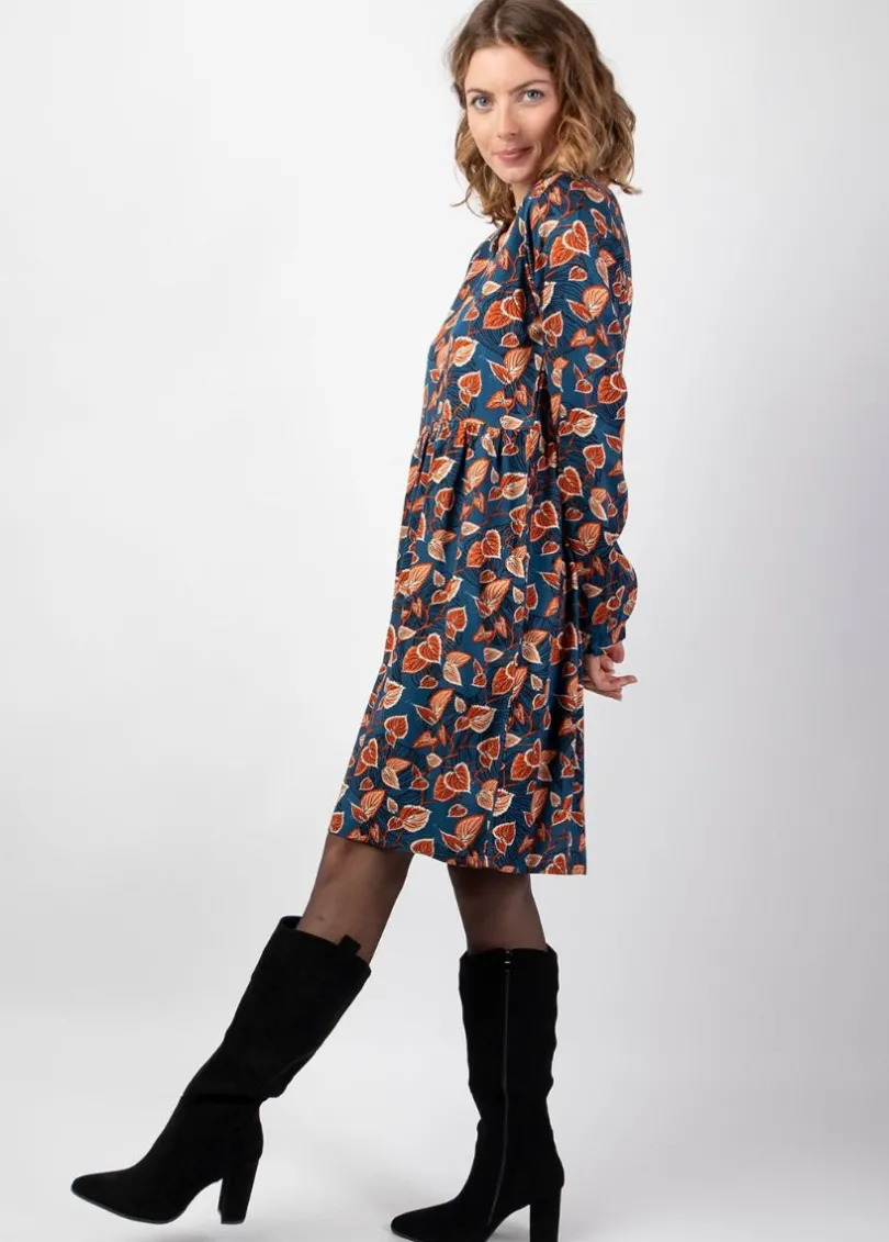 Hot Coton Du Monde Robe courte hiver babydoll AURELIA imprimé feuillage Tylia