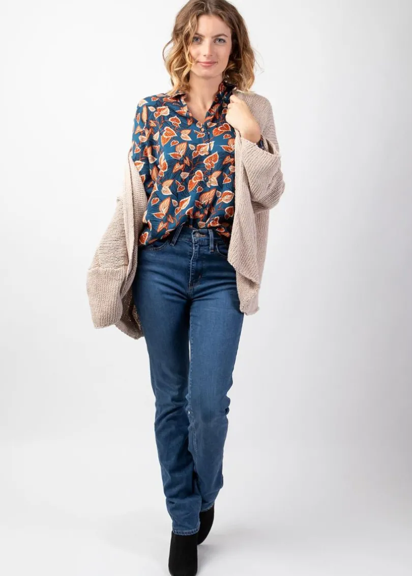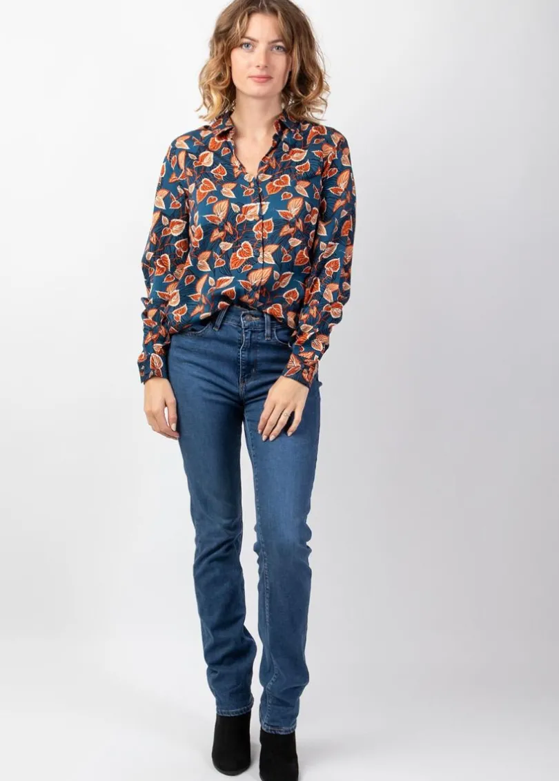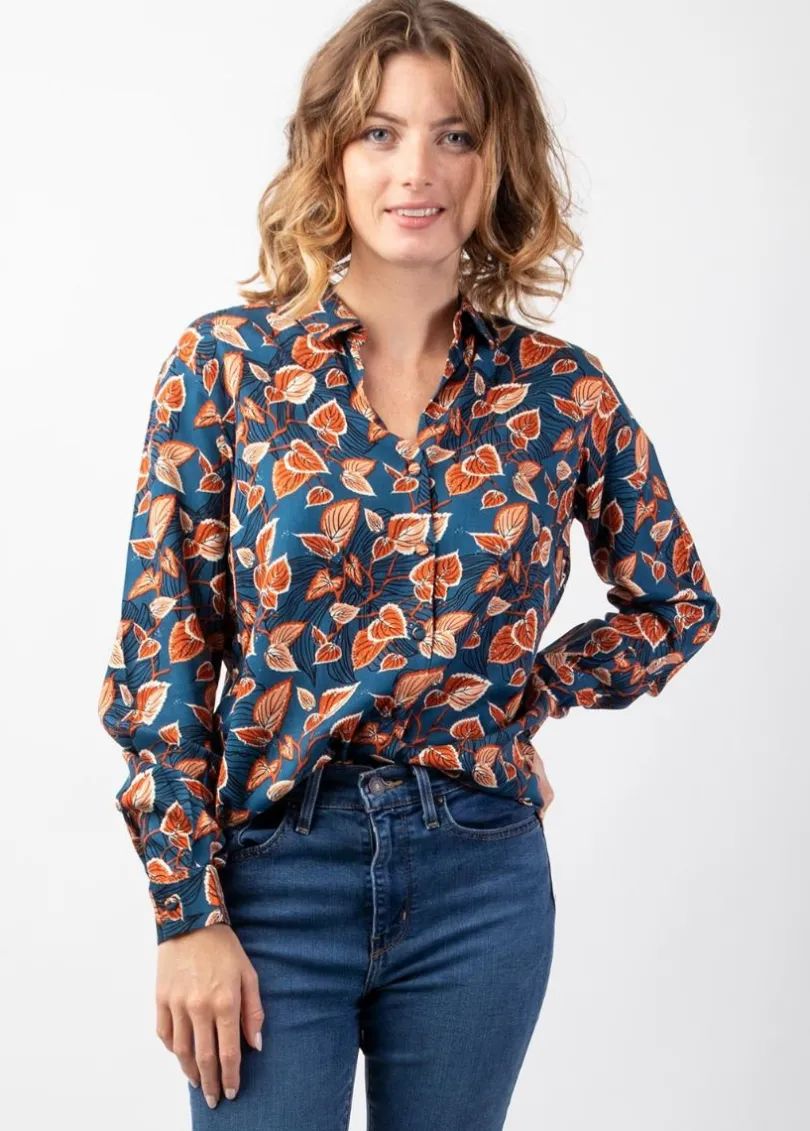 Ce chemisier à la coupe droite et au joli motif feuillage couleur automnale embellira votre quotidien en apportant une touche de féminité à votre tenue. On aime la matière viscose twill douce et chaude.