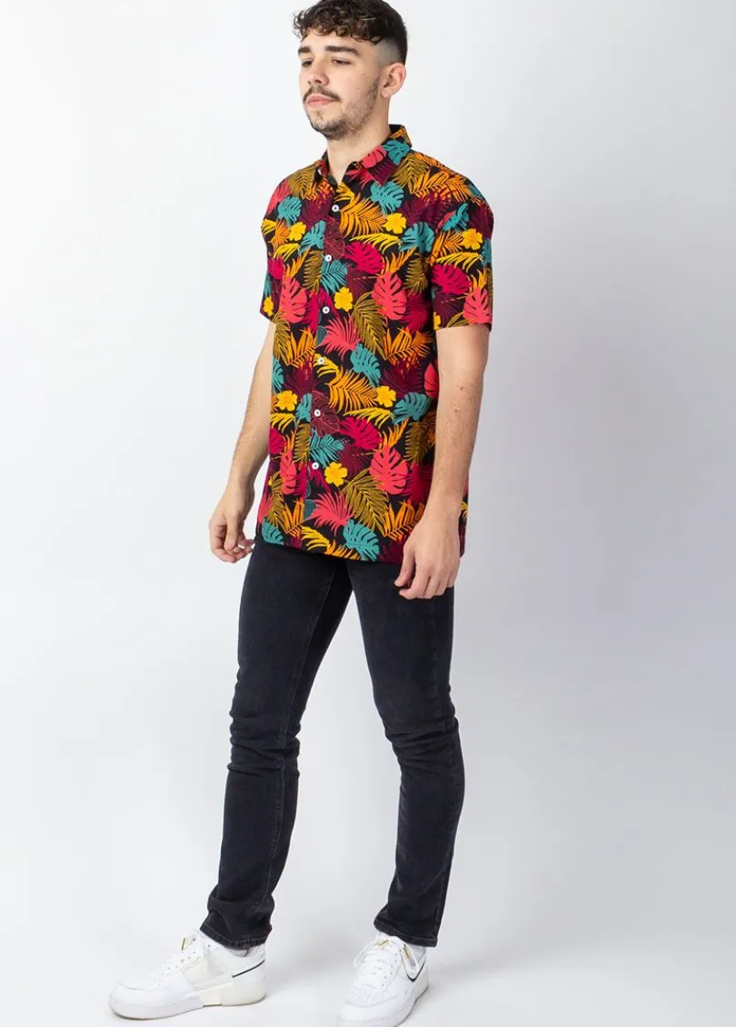 Profitez de l’été avec la chemise Lorenzo. Très agréable à porter grâce à sa coupe droite légèrement ample, cette chemise manches courtes à l’imprimé tropical orange sera parfaite en saison estivale.