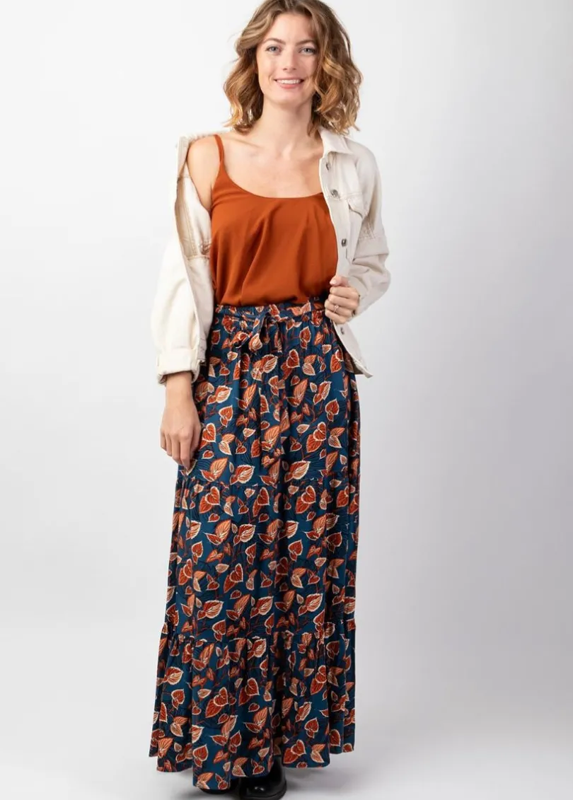 Cette jupe longue sera idéale pour commencer la saison automnale.