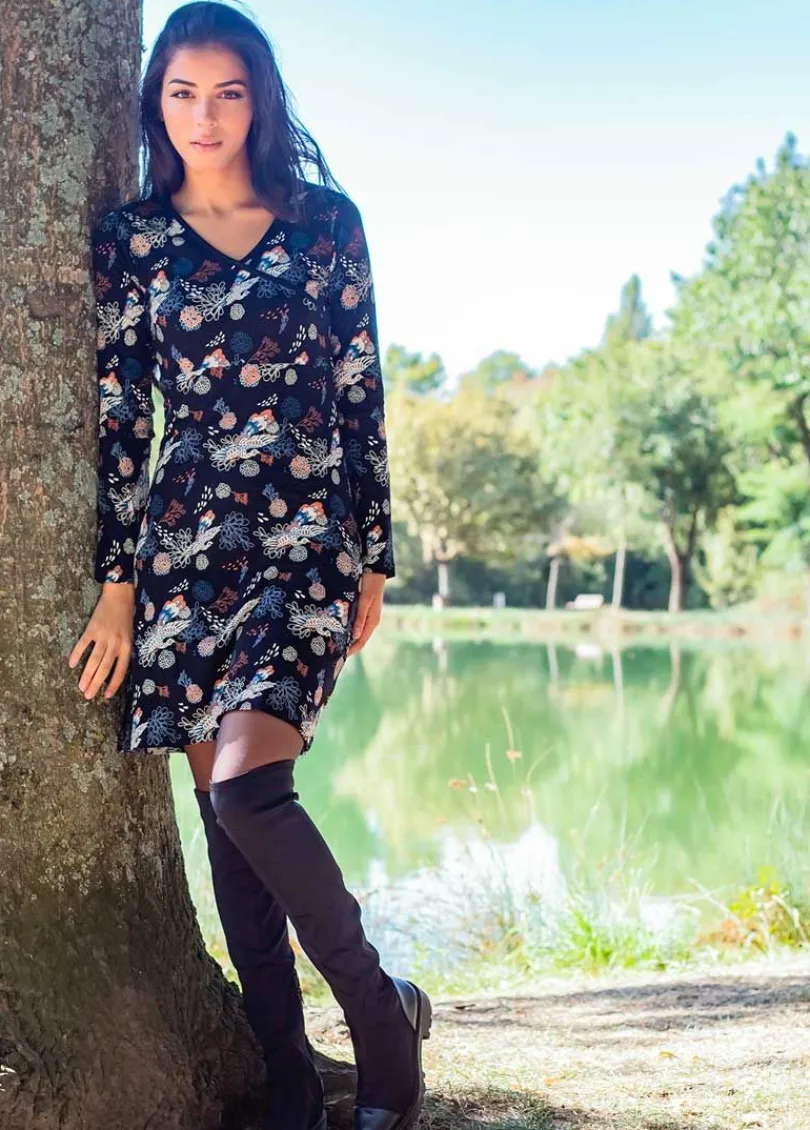 Online Coton Du Monde Robe courte en coton ARYA imprimé floral Narcisse Hiver