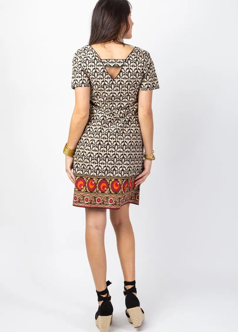 Online Coton Du Monde Robe manches courtes en coton CLAUDIA imprimé ethnique africain Kénya