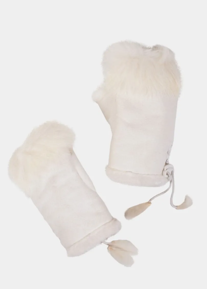 Outlet Coton Du Monde Mitaines Fourrure Blanc