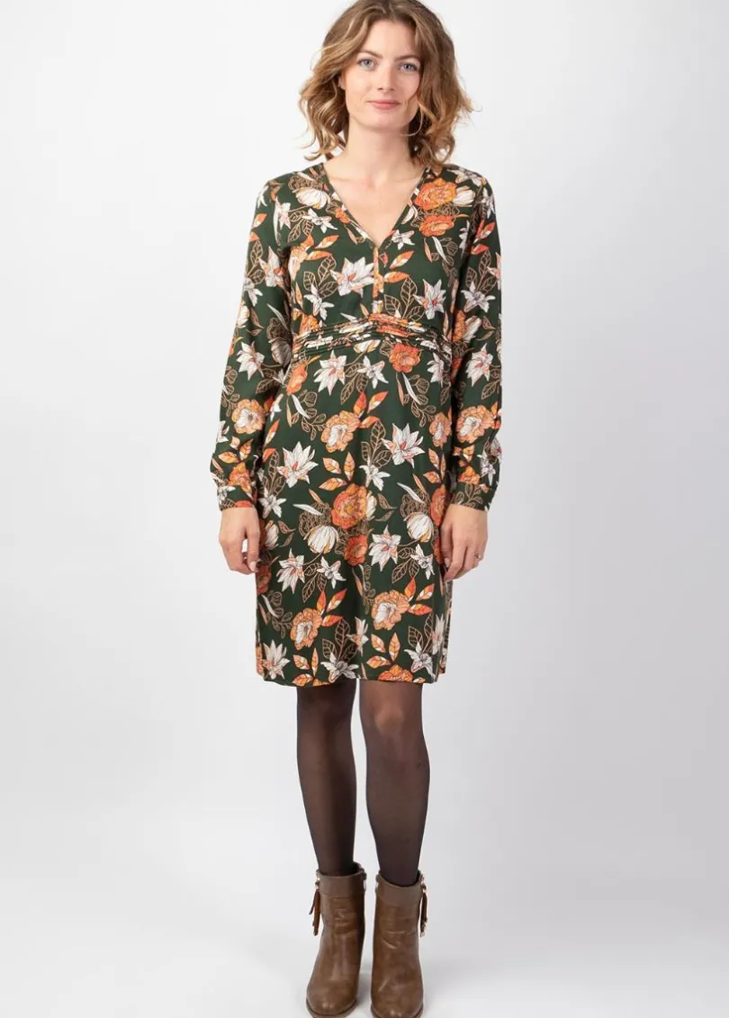 Cette petite robe courte en twill viscose soyeux sera facile à porter pour le début de la saison automnale. Chic et romantique, on aime l’imprimé fleuri kaki de cette robe à la belle matière douce et épaisse.