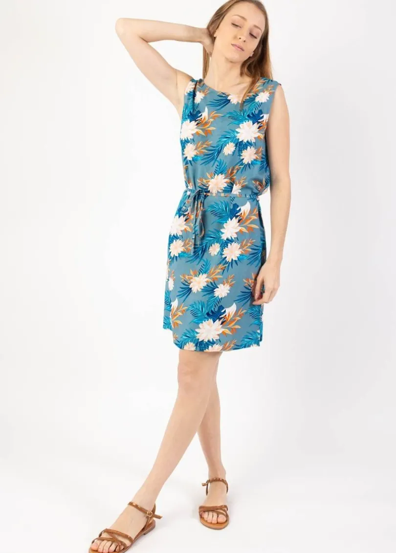 Sale Coton Du Monde Robe courte sans manches BIANCA imprimé exotique Exotique Gris