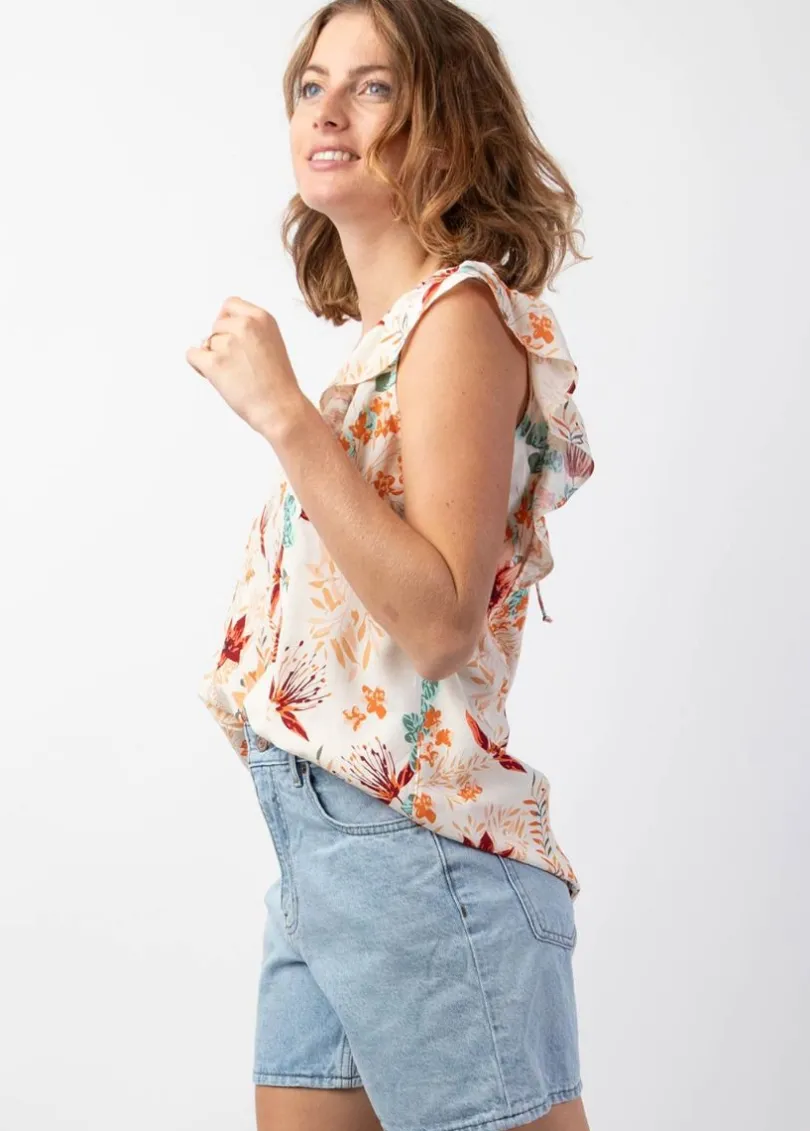 Sale Coton Du Monde Top femme sans manches à volants CHLOE imprimé romantique Garden