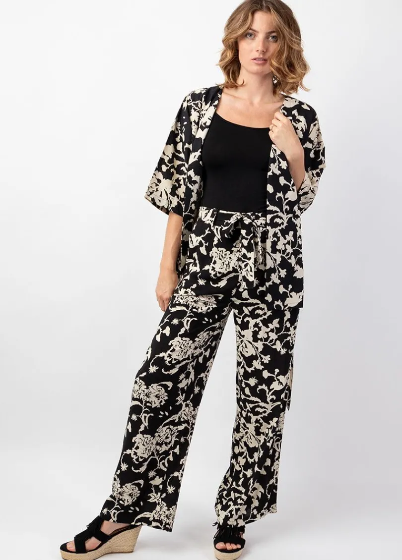 Store Coton Du Monde Pantalon fluide femme été MELODY noir motif ethnique Palua Noir