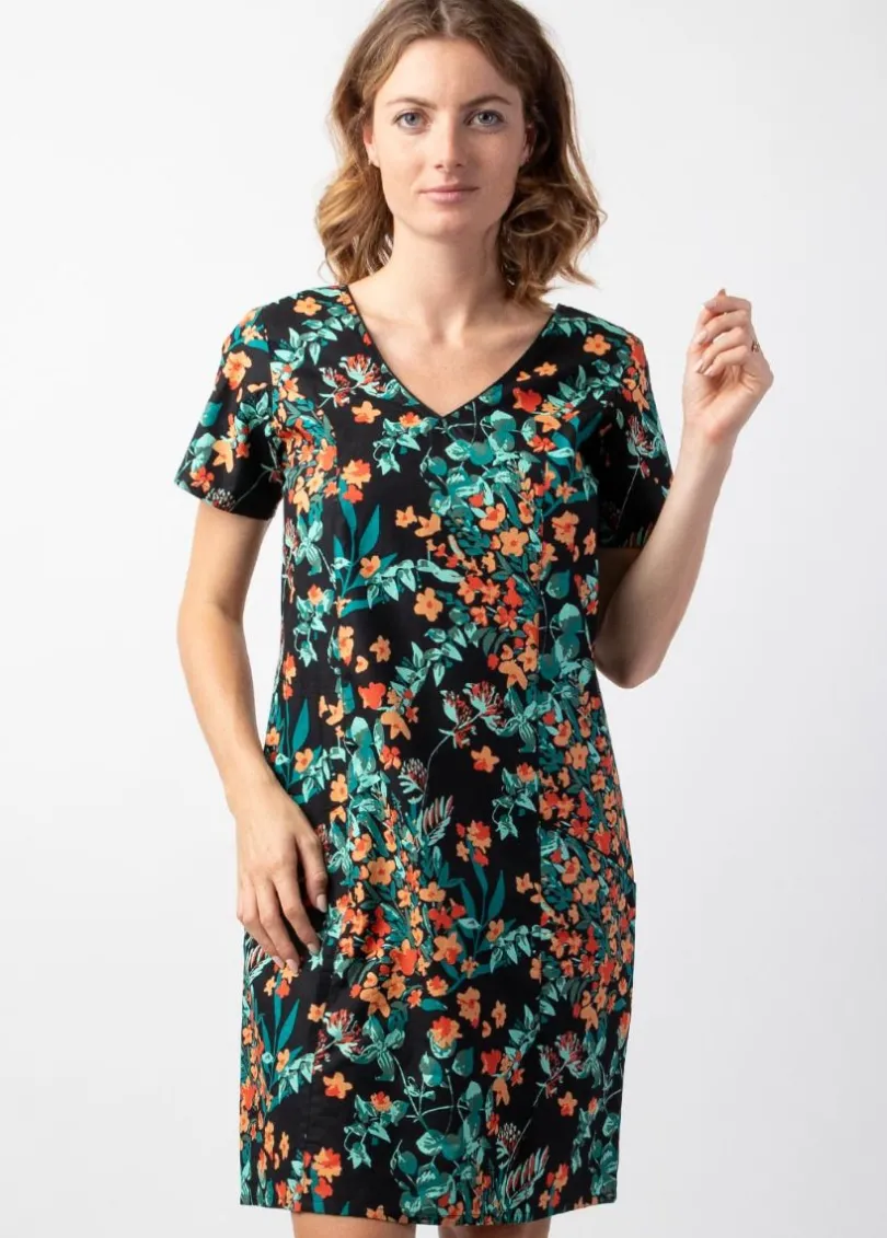 Store Coton Du Monde Robe coton femme manches courtes CLAUDIA imprimé floral coloré Jaipur