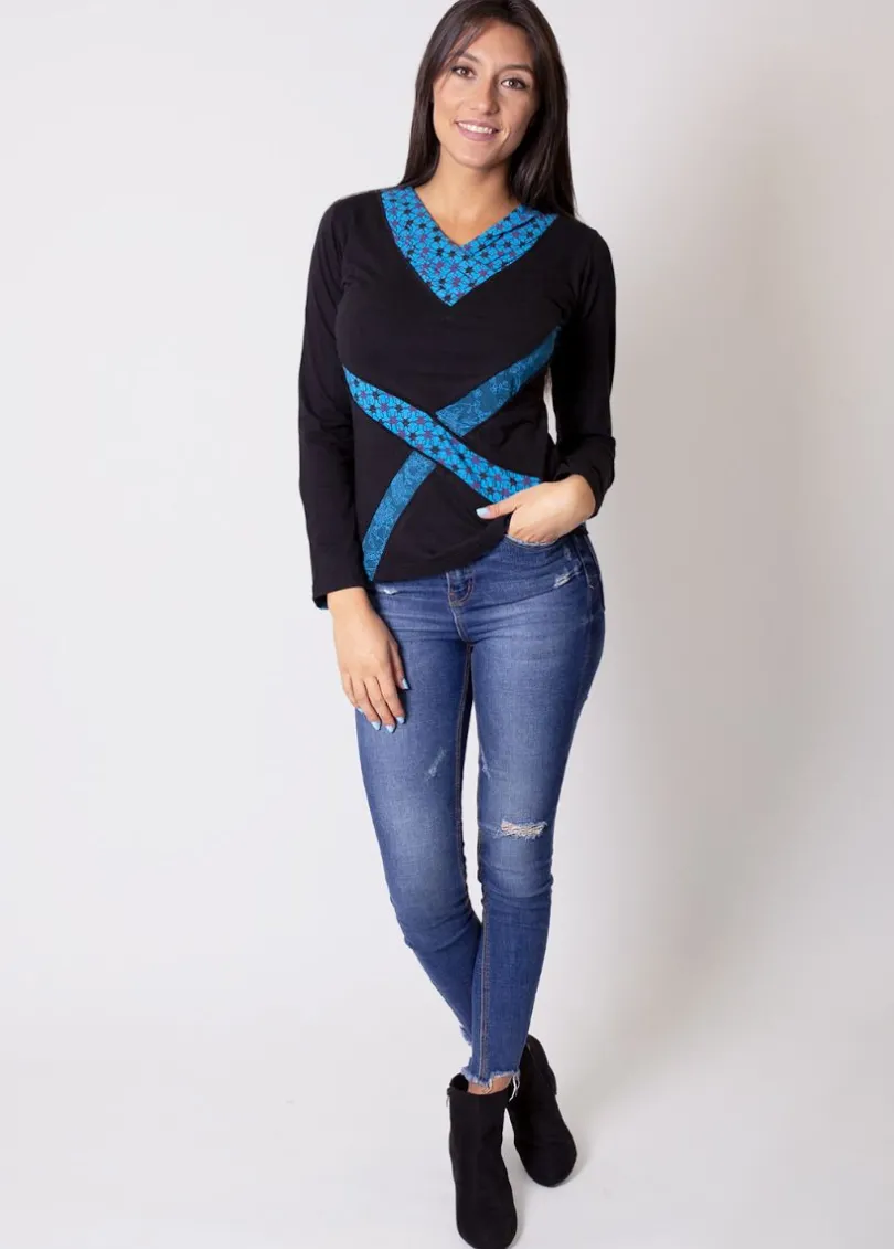 Top manches longues aux motifs colorés, facile à porter avec un pantalon uni ou une jupe courte.Très agréable pour les premiers jours d’automne, ce top en coton vous apportera confort et tendance ethnique.Craquez pour ce modèle fantaisie et ses belles teintes de bleu qui se marieront avec beaucoup de tenues.N’hésitez plus, adoptez ce top DENALI !